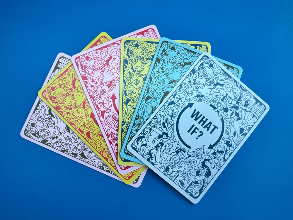 WHAT IF? is a conversation deck for the weird, smart, and fun. WHAT IF? provides wild scenarios like "all walls are curved" and "money expires after one day." WHAT IF? is a delightful challenge that invites you to question the way things are — how we relate to each other, the environment, and other species— and dream up alternatives for how things could be.